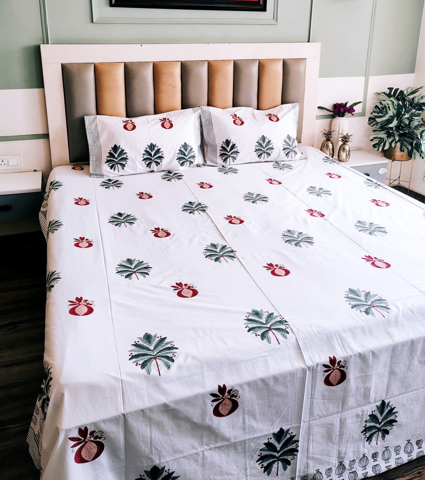 Neel Kamal Block Printed Bedsheet with Two Reversible Pillow Covers