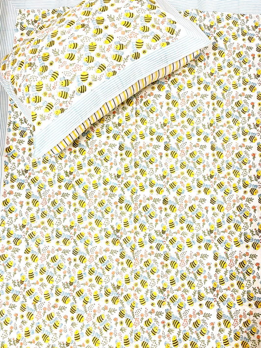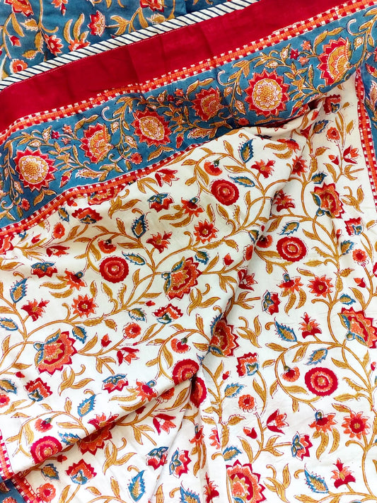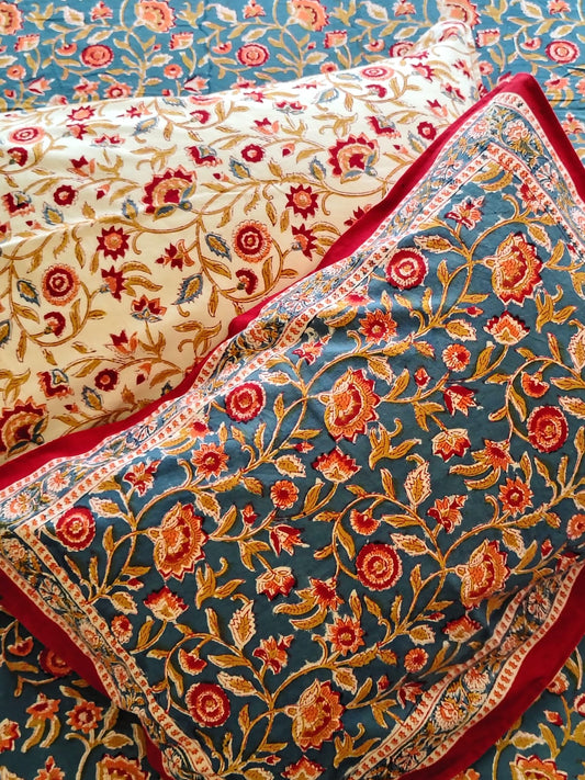 Begum Kamal Block Printed Bedsheet with Two Reversible Pillow Covers