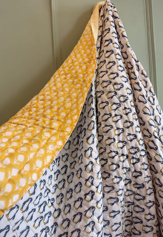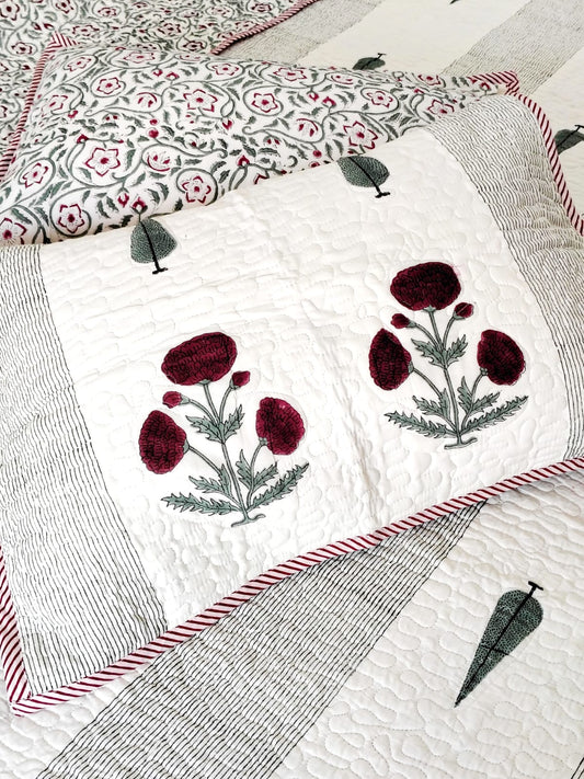 Pine Tree Hand Block Reversible Double Bed Quilt