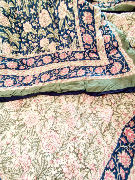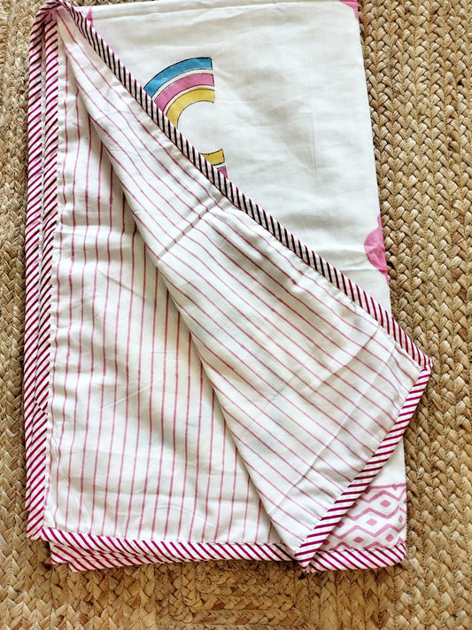 Pinky Pom Hand Block Reversible Double Bed Quilt