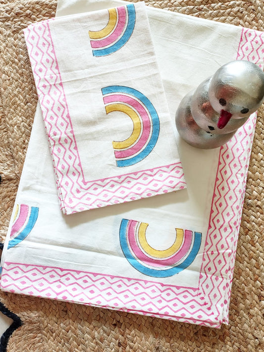 Pinky Pom Block Print Bedsheet & Quilt Set