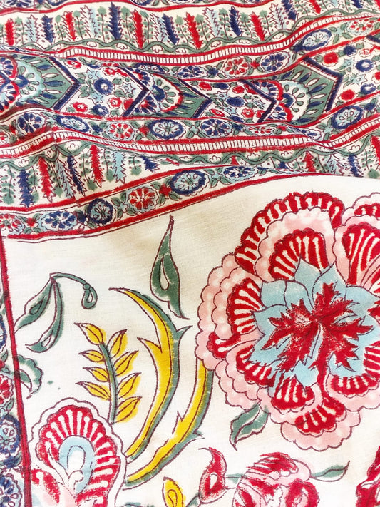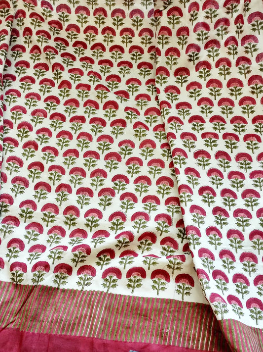 Red Floral Jaal Block Printed Bedsheet with Two Reversible Pillow Covers