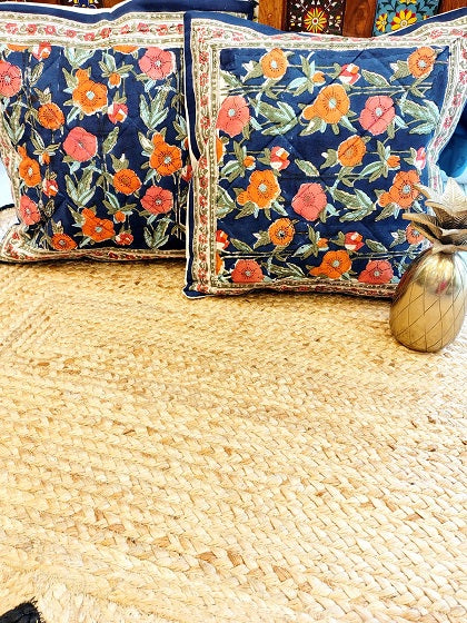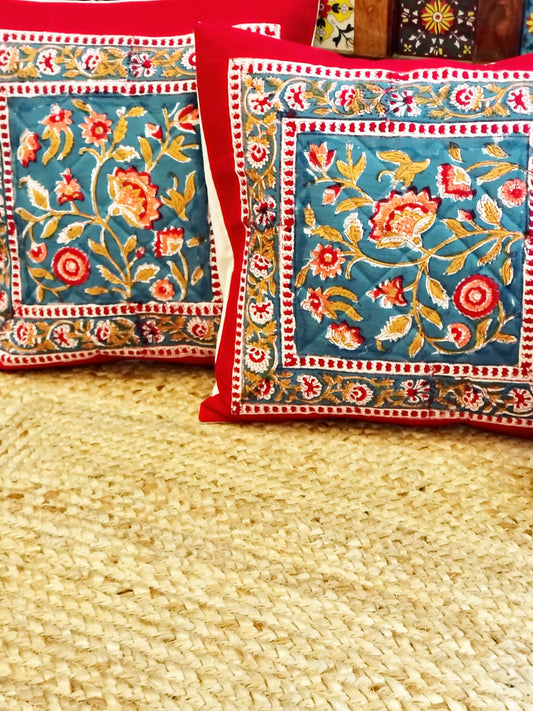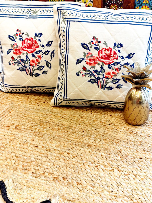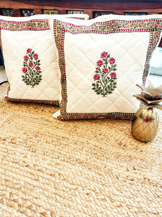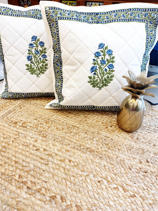 Set of 2 Hand Block Cushion Covers- Quilted