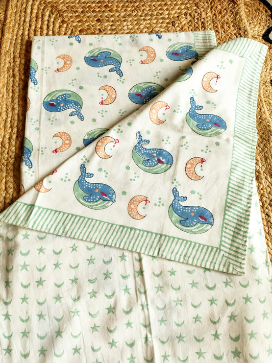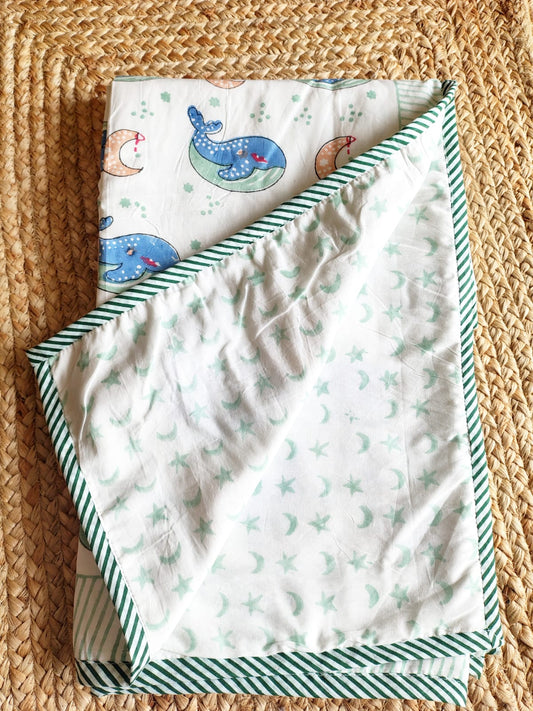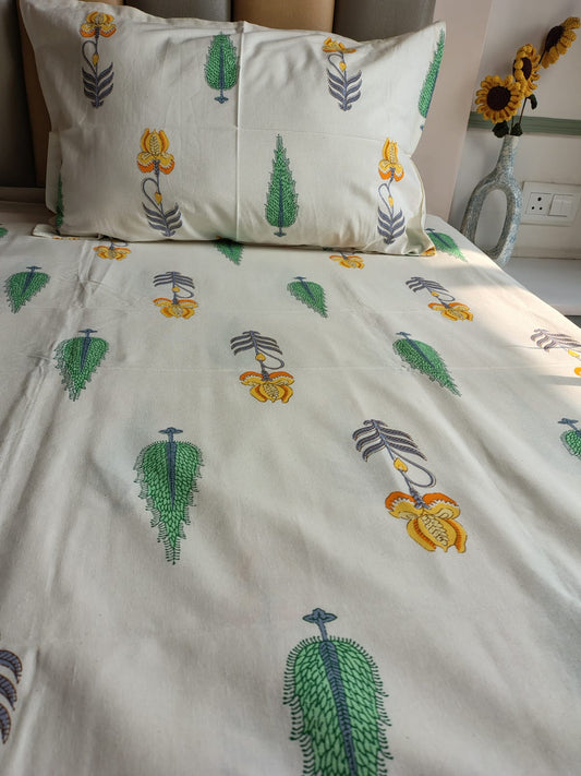 TREE PRINT BEDSHEET WITH TWO REVERSIBLE PILLOW COVERS