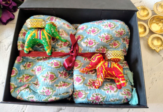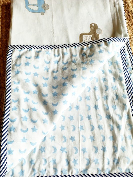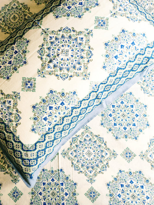 Blue Roshan Traditional Printed Bedsheet with Two Reversible Pillow Covers