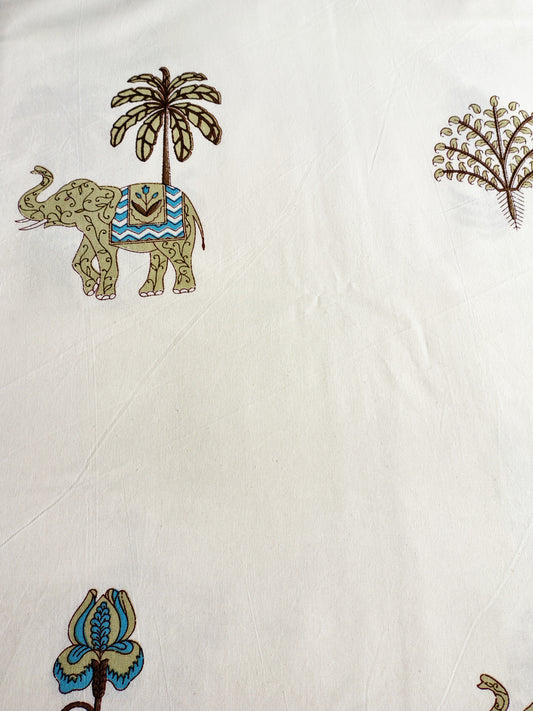Brown Elephant Floral Traditional Printed Bedsheet with Two Reversible Pillow Covers