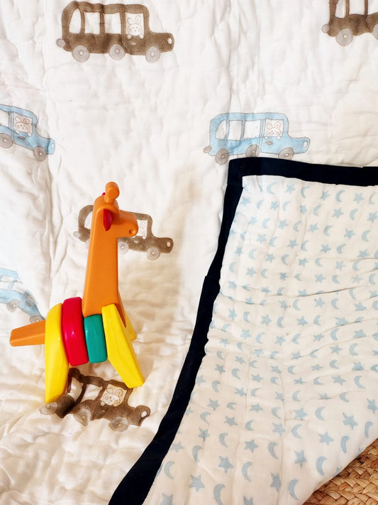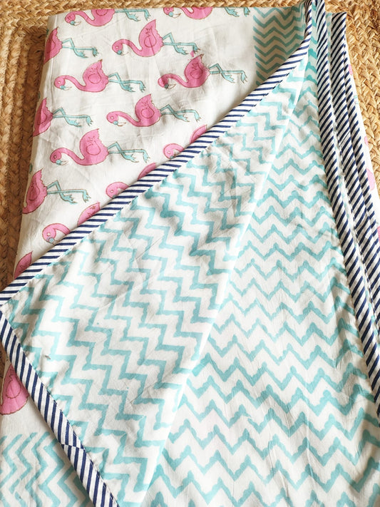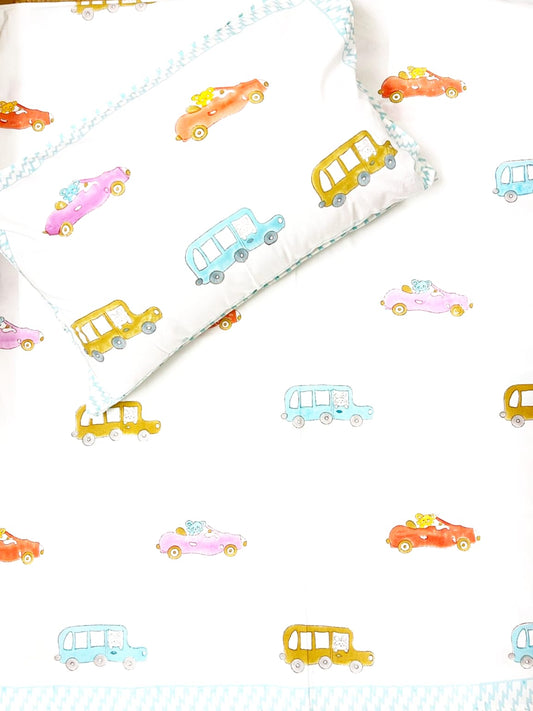 Blue Umbrella Traditional Printed Bedsheet with Two Reversible Pillow Covers