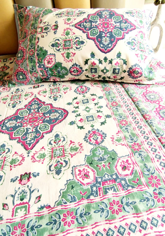 Diamond Traditional Printed Bedsheet with Two Reversible Pillow Covers