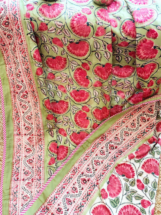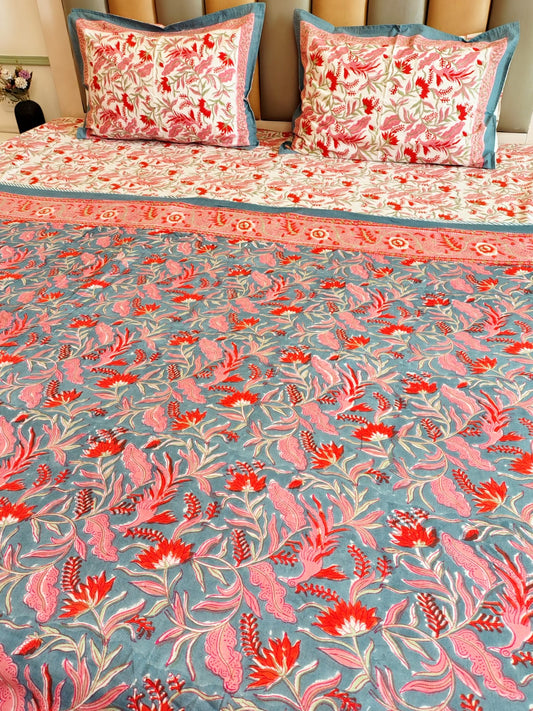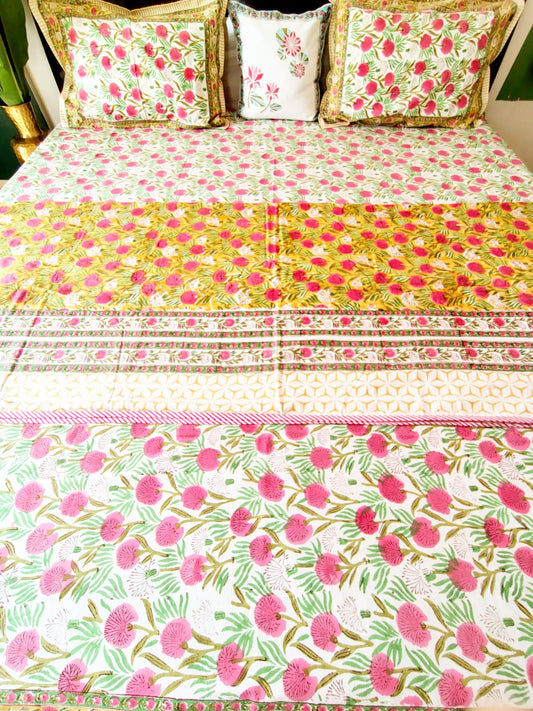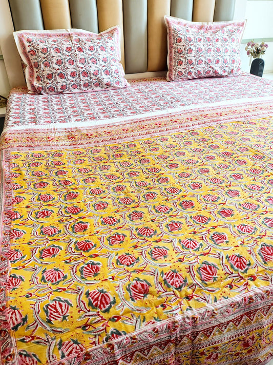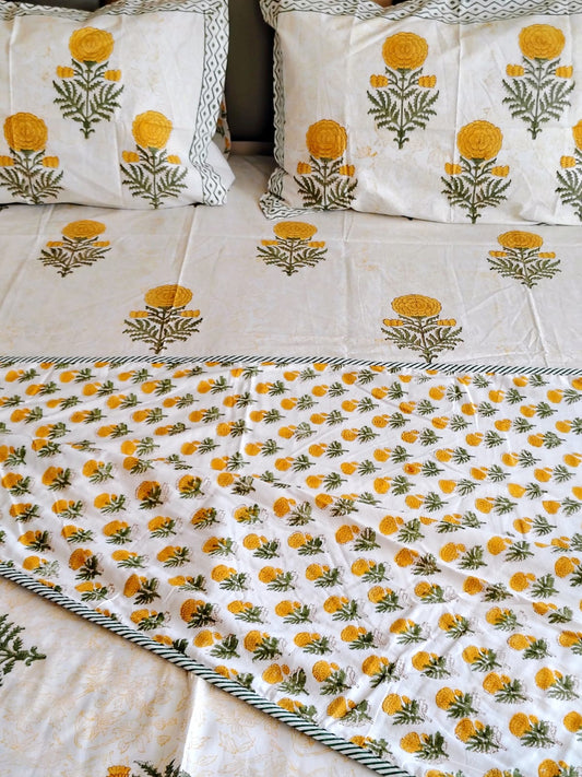Yellow Genda Hand Block Print Bedsheet & Quilt Set