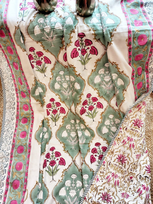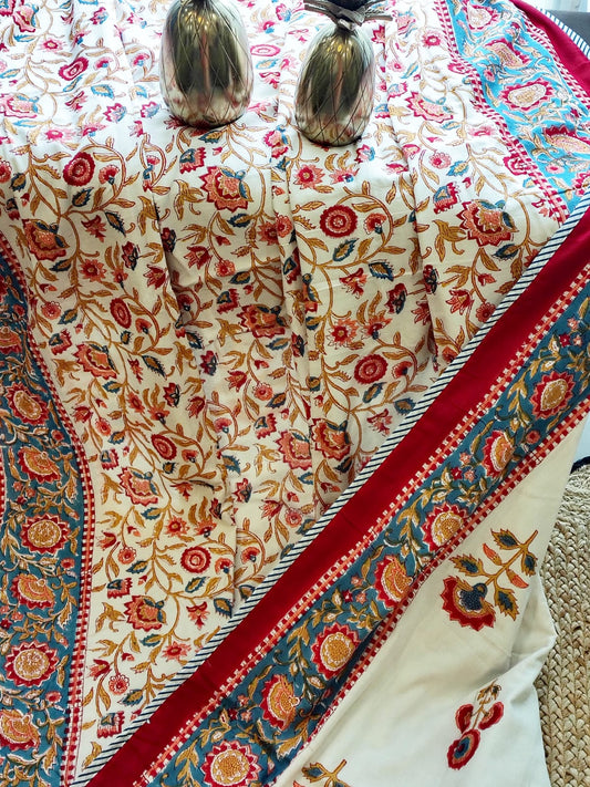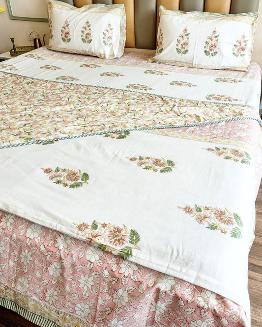 White Forest Block Print Bedsheet and Bedcover Combo - 6 Piece Combo