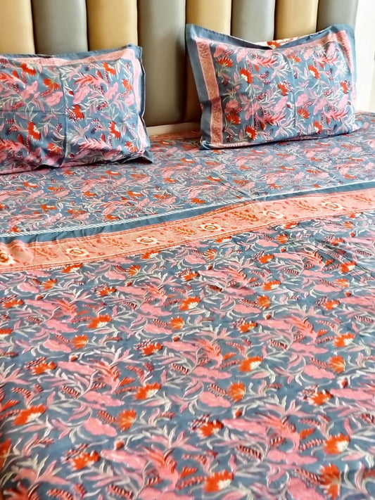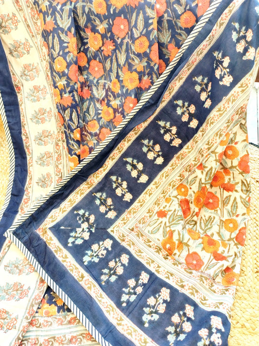 Yellow Genda Hand Block Matching Bedsheet & Dohar Set