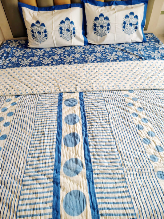 Blue Dot Hand Block Print Bedsheet & Quilt Set
