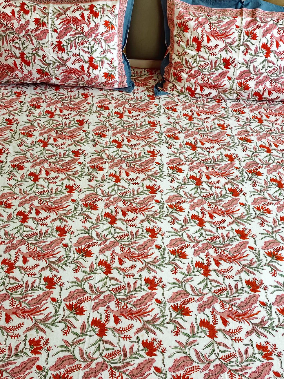 Kesari Kothi Hand Blocked Double Bedsheet with Two Reversible Pillow Cover