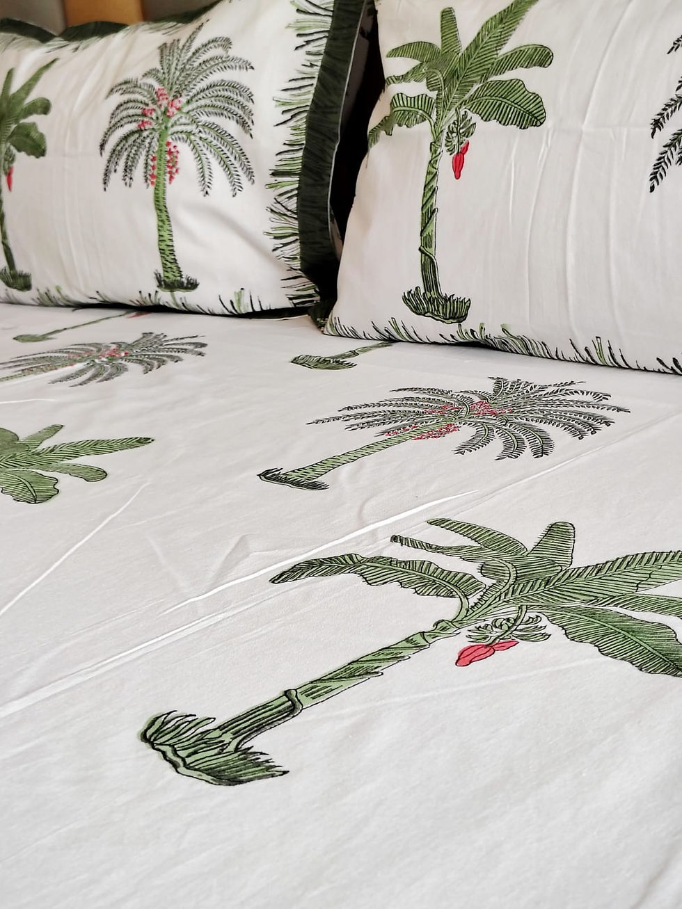 Green Plam Hand Block Print Bedsheet and Dohar Set