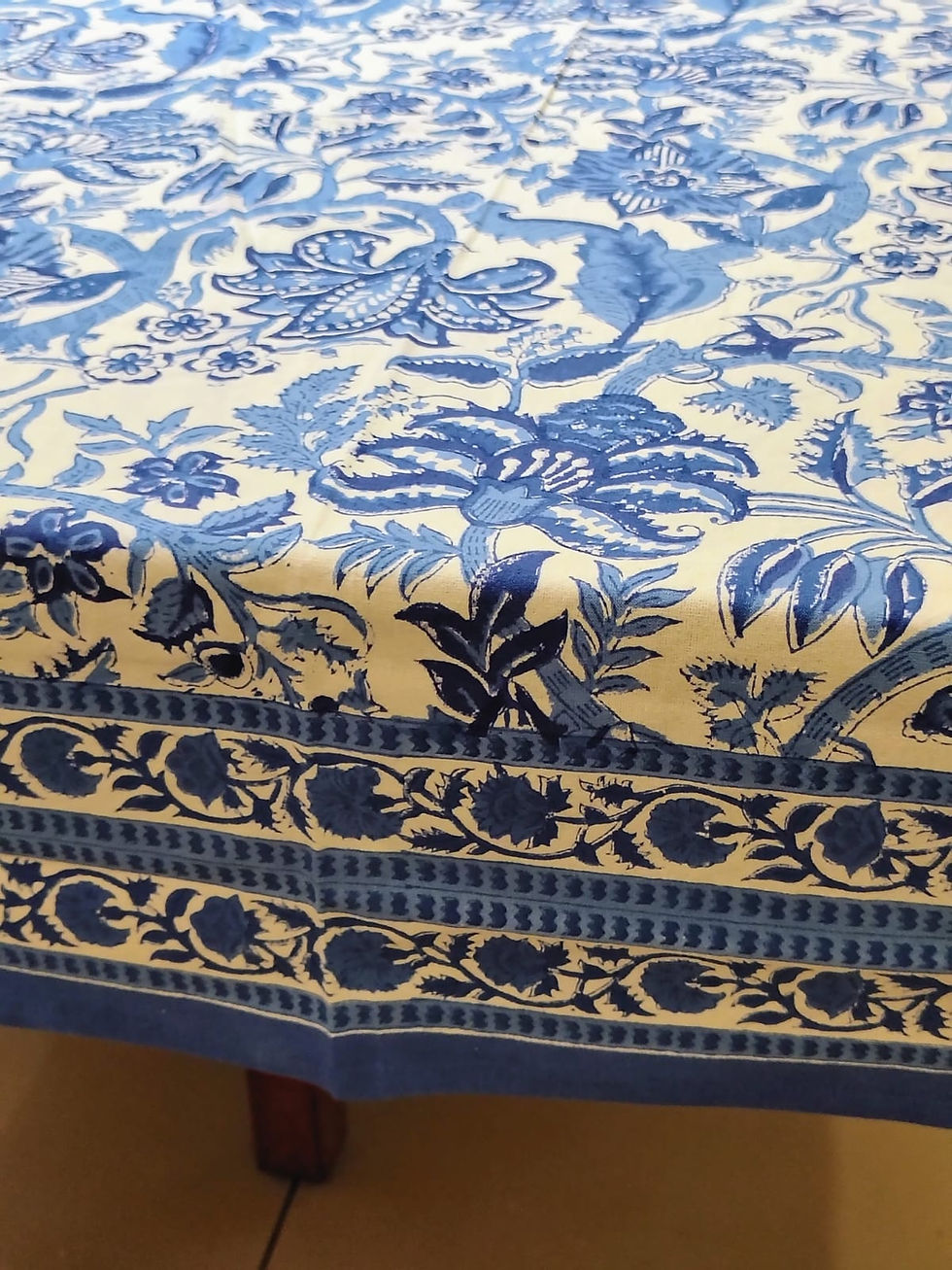 Blue Floral Handblock Table Cover