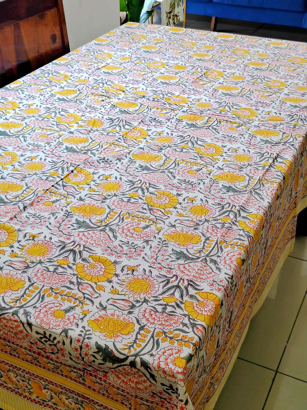 Yellow Marie Handblock Table Cover