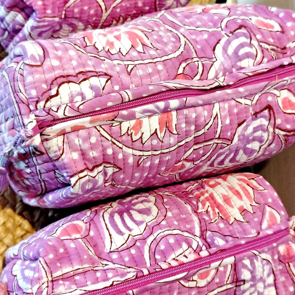 Our multi-functional toiletry bags can be used as a cosmetic pouch, vanity case, or travel toiletry bag. They come with a zipper and pretty pearl tassels. The inside has a waterproof lining to keep your things safe from spills.