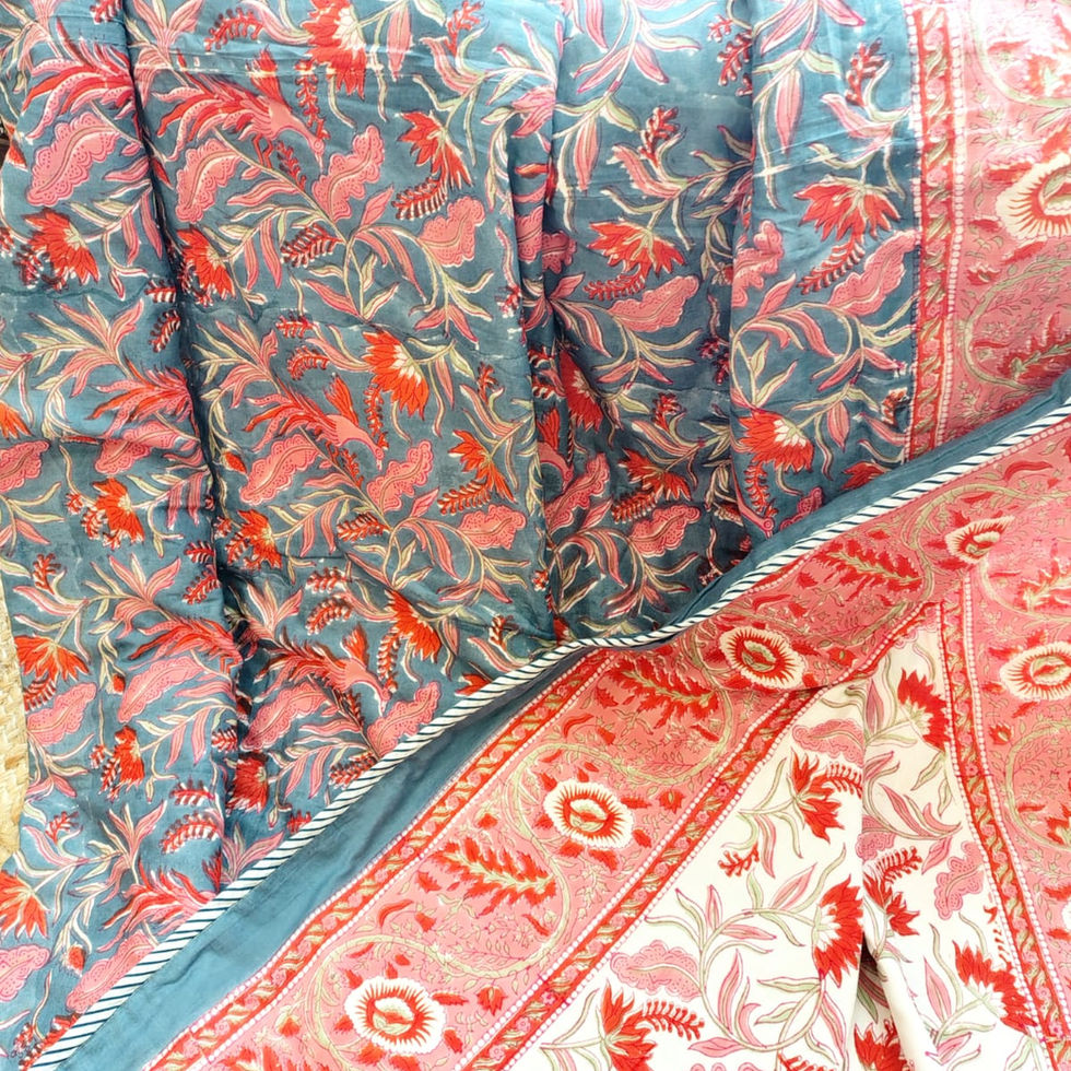 Crafted from three layers of soft cotton mulmul, our hand block printed dohar offers gentle warmth and everyday comfort. Light, breathable, and finished with subtle piping, it’s the perfect layer for mild winters and air-conditioned rooms.