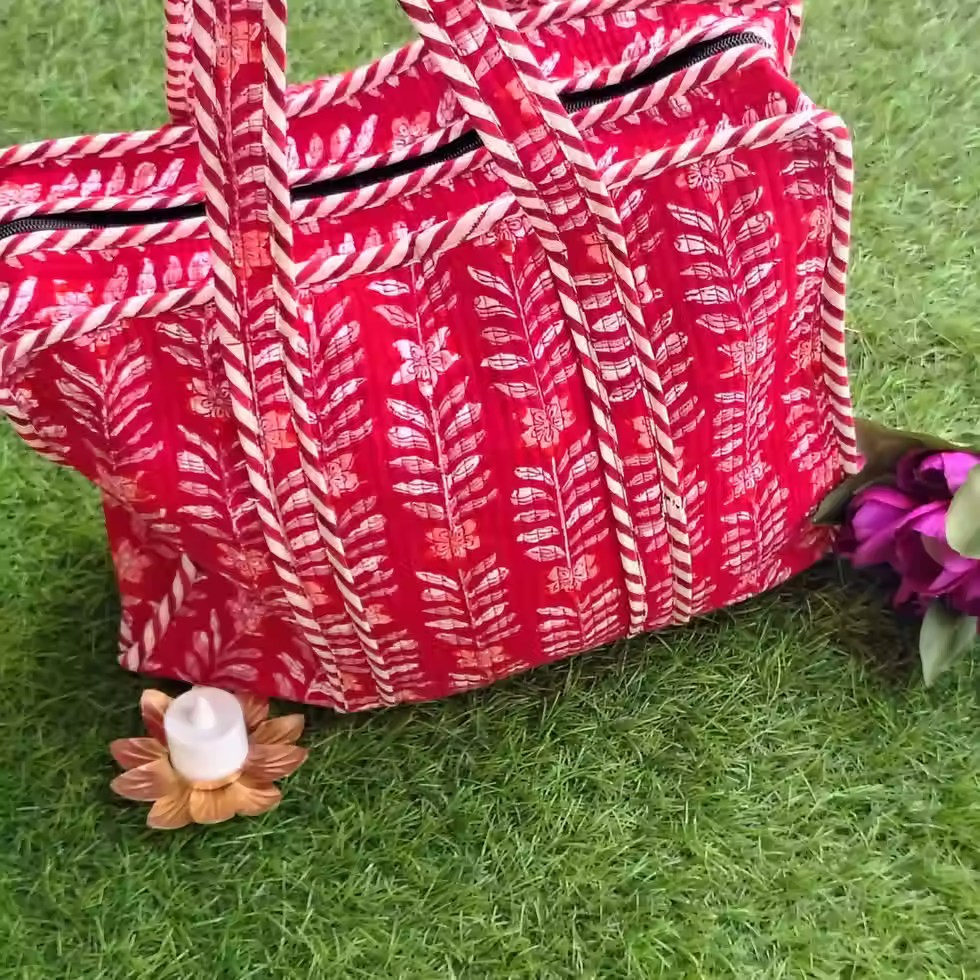 Crafted for everyday elegance, this quilted tote bag combines traditional charm with modern functionality. Made from 100% cotton with durable quilting, it features a spacious interior, inner pocket, and secure zipper closure.